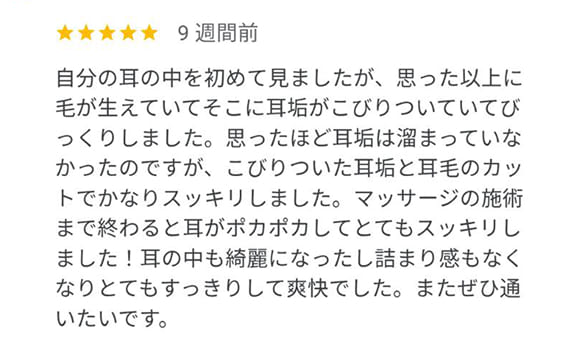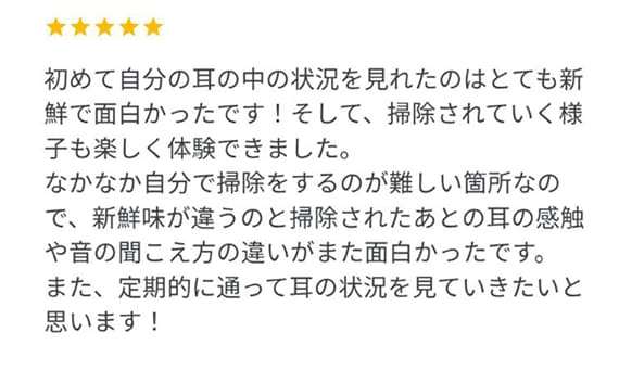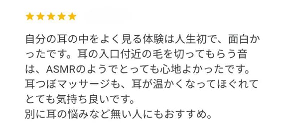 スッキリしていく様子を一緒に確認できる、ちょっと新しい耳掃除体験です。