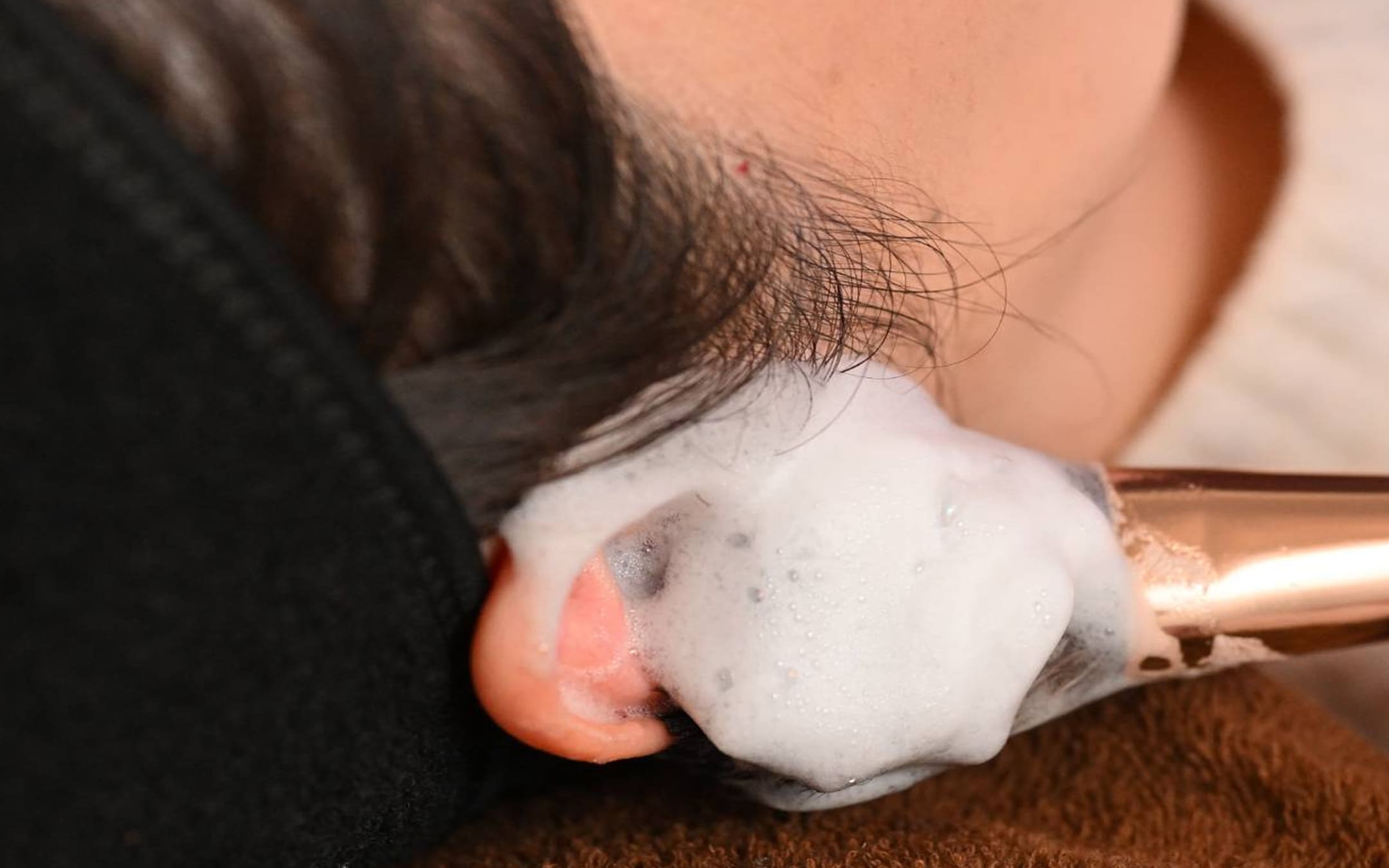 耳の中をスッキリさせた後は、オリジナルの濃密泡で耳の外の汚れをケア。触り心地が格段に変わる、ミミミル?式の耳泡洗浄をお試しください。
