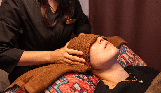 施術の仕上げには、 頭部をゆるめるオリジナルのヘッドスパを行います。 心地よい刺激で、 思考まで静かに整えていきます。お客様の好みに合わせて力加減は調整致します。(希望の方にはホットアイマスクも使用致します。